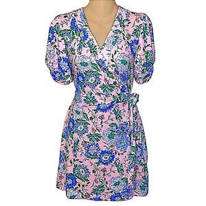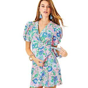 This Lilly Pulitzer jumpsuit features a stunning blue floral pattern, complemented by elegant ruffle accents and a fitted waist. Crafted from lightweight, summery fabric, it offers a chic and comfortable fit perfect for warm weather occasions.