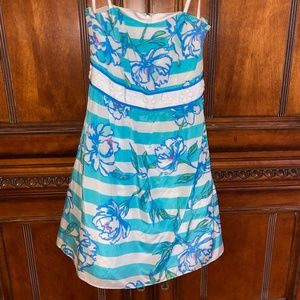 Lilly Pulitzer Blue Floral & Stripes Strapless Dress