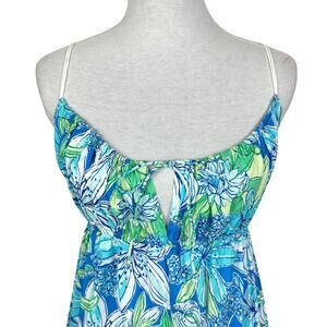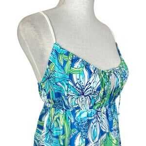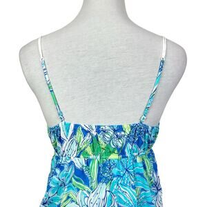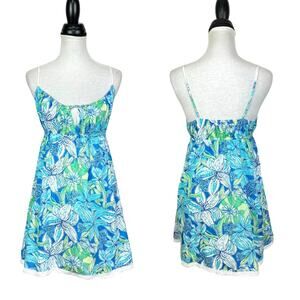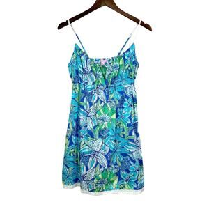 Lilly Pulitzer Blue & Green Tropical Floral Eyelet Lace Cotton Mini Dress