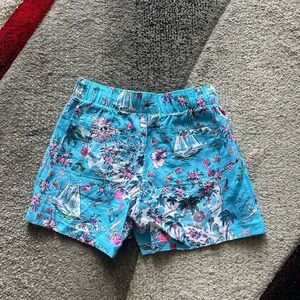 Lilly Pulitzer Blue Linen Tropical Print Shorts