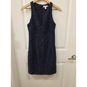 Lilly Pulitzer Augusta shift true navy drippy paisley lace dress is perfect for your next vacation, brunch, bridal shower or date night.