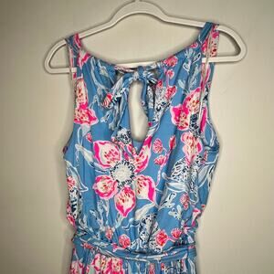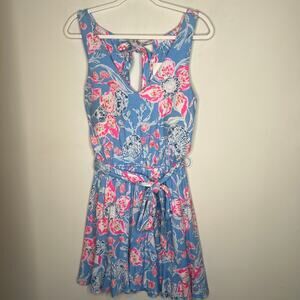 Lilly Pulitzer Blue & Pink Camri Floral Halter Romper Mini Dress Size M