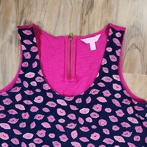 🔸️Lilly Pulitzer Blue & Pink Hart Lips Sleeveless Top Small