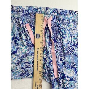 Lilly Pulitzer Blue Pink Paisley Straight Leg Pants Tie Waist Relaxed Stretch L
