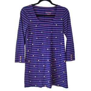 Lilly Pulitzer Blue Pink Striped Nautical Shift Dress Preppy Beaded Women's XS