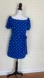 Step out in style with this chic blue polka dot off-shoulder dress / Romper . Perfect for any occasion, this dress combines elegance with a playful touch.