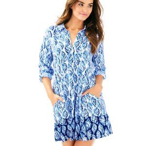 Lilly Pulitzer Blue Pop Up Coronado Crab Seashells Lillith Tunic Dress Size XXS