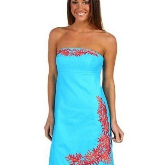 Lilly Pulitzer Blue Stitched Coral Strapless Dress