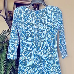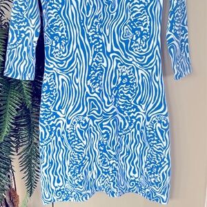 Lilly Pulitzer Blue & White Seahorse Swirl Dress V-Neck 3/4 Sleeves Tropical.