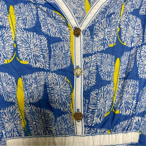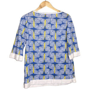 Lilly Pulitzer Blue Yellow Butterfly Print Egan Pintuck Tunic Blouse Top Small