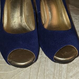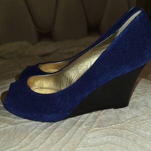 Step into elegance with these Lilly Pulitzer wedges, featuring a stunning blue and gold color combination. The wedge heel offers both height and stability, making them perfect for any occasion. Crafted with a sophisticated design, these shoes are a stylish addition to any wardrobe.