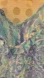Vibrant muscle tee with ruffle details. Features a mix of blue and green patterns. Sleeveless design for comfort.