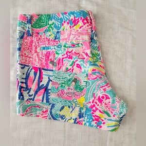Lilly Pulitzer Blue and Pink Bermuda Shorts Vibrant Tropical Style