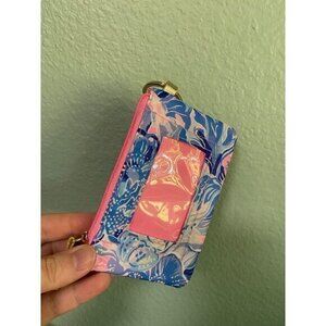 Lilly Pulitzer Blue and Pink Patterned Coin Card Wallet Keychain