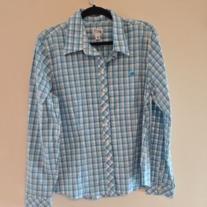 Lilly Pulitzer Blue and White Checkered Button Down Shirt. 21P2P 95%Cotton