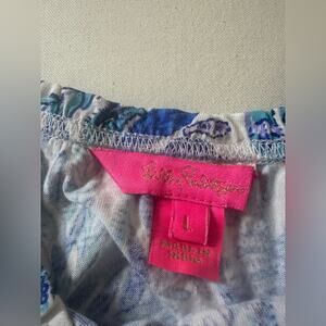Lilly Pulitzer Blue and White Floral Tiered Swing Cotton Dress Size Large EUC