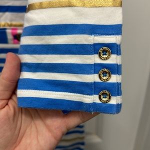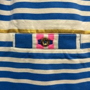 Lilly Pulitzer Blue and White Striped Dress with Pink and Gold Accents - Size S
