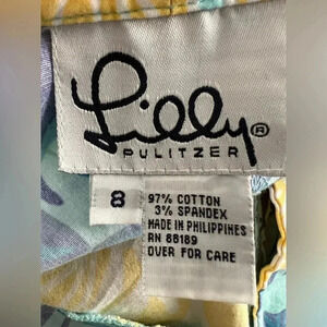 Lilly Pulitzer Blue and Yellow Floral Cropped Capri Pants Sz8