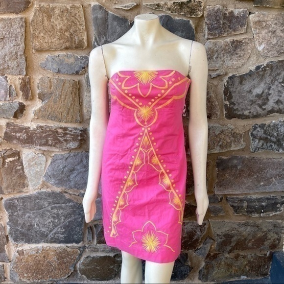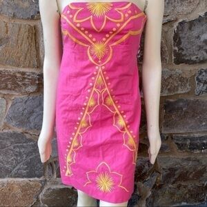 Lilly Pulitzer Bowen Embroidered Strapless size 6 in excellent preowned condition with no flaws. Beautiful Hot pink with yellow embroidery