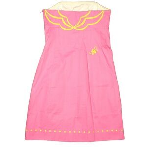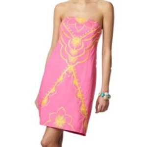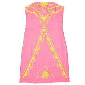 Lilly Pulitzer Bowen Hotty Pink Yellow Embroidered Strapless Dress Bee Size 00