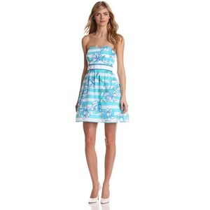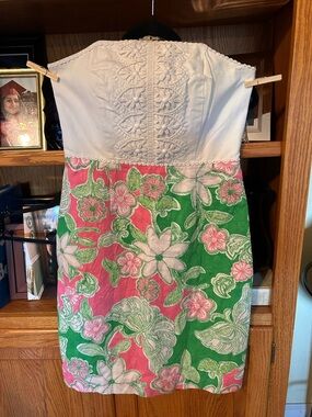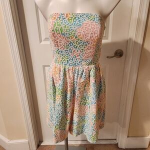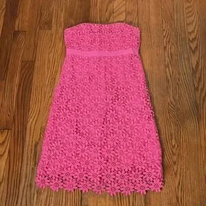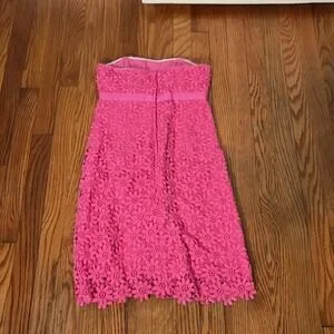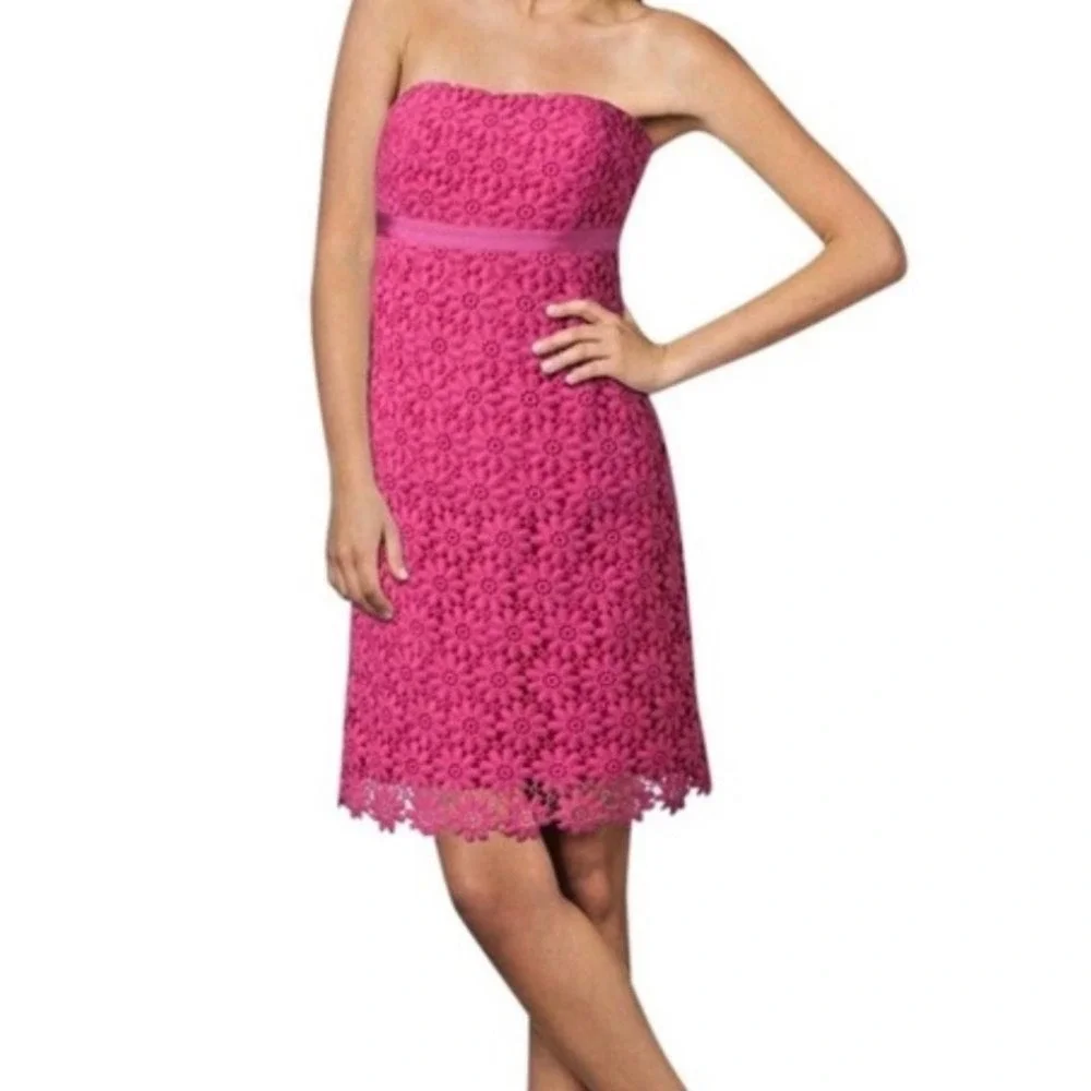 Lilly Pulitzer Bowen Pink Floral Eyelet Lace Strapless Empire Waist Dress Size 0