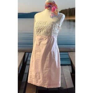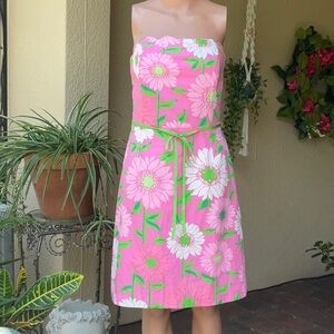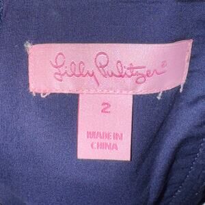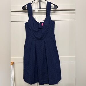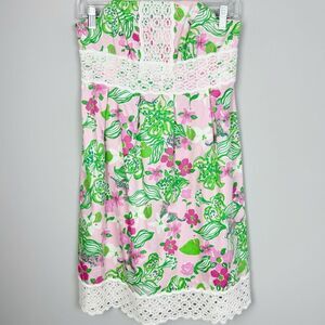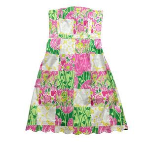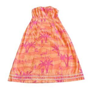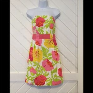 Lilly Pulitzer Bowen Strapless Dress Women 2 Navy Basket Weave Coral Embroidered