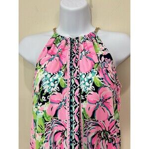 Lilly Pulitzer Bowen Top High Tide Navy XS Gold Chain Halter Pink Tropical Flora