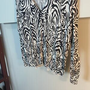 Super pretty zebra print v-neck Eleni sweater in a women's size extra small. Dark brownish black and white color scheme. Gently used, no flaws, great condition!