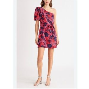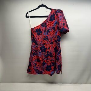 Like new Step out in style with this vibrant floral one-shoulder rompers . Perfect for any occasion, this dress features a stunning red and blue pattern that adds a pop of color to your wardrobe. Enjoy the comfort and elegance of this must-have piece.