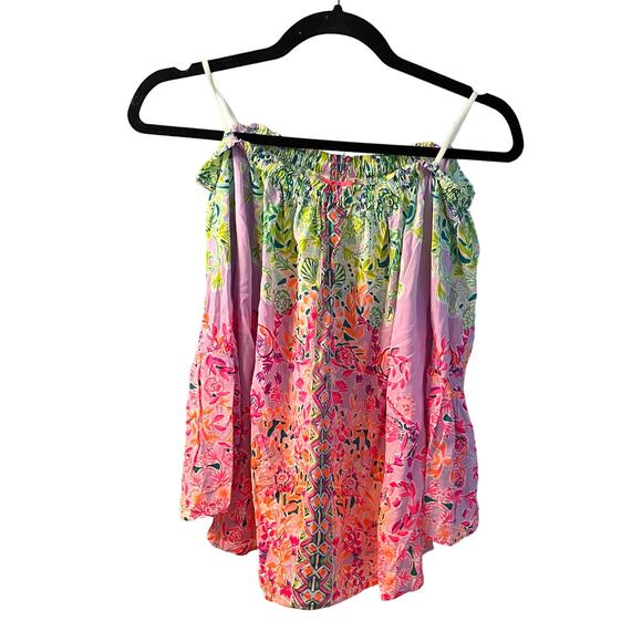 Lilly Pulitzer Bright Multicolor Floral Boho Off-Shoulder Tank Top Size XS