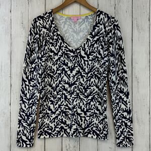 Lilly Pulitzer Bright Navy Treasure Adelaide V-Neck Knit Sweater Size Small