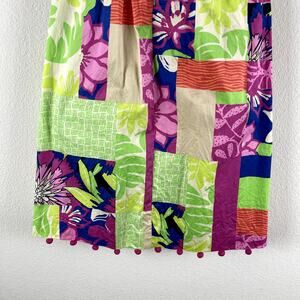 Lilly Pulitzer Brighton Patchwork Print Halter Dress Womens 2 Green Pink Pom