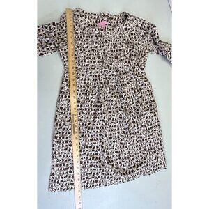 Lilly Pulitzer Brown White Elephant Dress Size 0 Womens 3/4 Sleeve Half Button