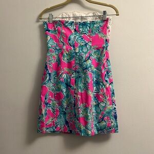Lilly Pulitzer Brynn Dress Raz Berry Lobsters - Strapless Lace- Size 0