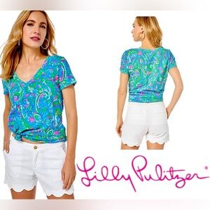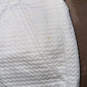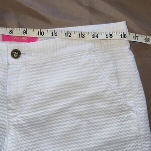 Lilly Pulitzer Buttercup Stretch Short is a wear- anywhere and wear-often staple made for the sunshine of spring and summer. Their Mid-Rise silhouette is fashioned from stretch fabric with a basketweave texture that looks and feels great, while the scalloped hem adds a jaunty touch. Approximate measurements in photos. Tiny spot on the left pocket. (See pic) I have not tried to get it out. Excellent condition otherwise.