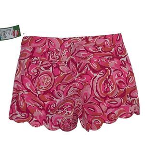 New with tags Lilly Pulitzer Buttercup Shorts in Pink Pout Mango Salsa. Size 00. 5" inseam and scalloped hem.