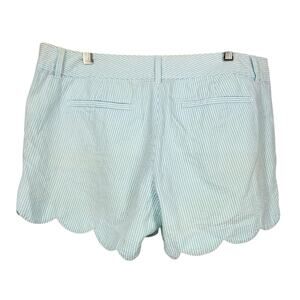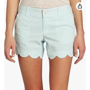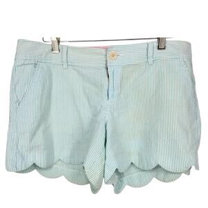 🔑 Keywords: Lilly Pulitzer Buttercup Shorts seersucker scalloped hem preppy coastal chic resort wear summer staple classic stripe