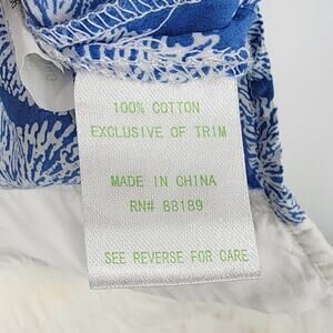 LILLY PULITZER Butterfly Floral Print Blue White Cotton Top Womens Medium Summer