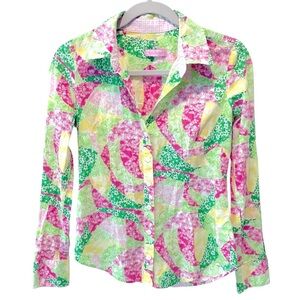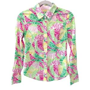 Lilly Pulitzer Jonni Wing Ding Floral Patch Long Sleeve Button Front Shirt.🌸💫
