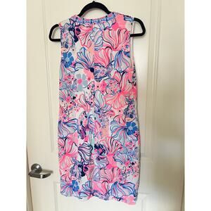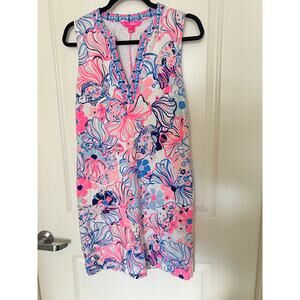 Lilly Pulitzer CAMARI SHIFT DRESS Prosecco Pink Make A Splash Blue Small