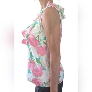 Lilly Pulitzer COTTON Ruffled Flirty Pink Green Floral Print Sleeveless Blouse S