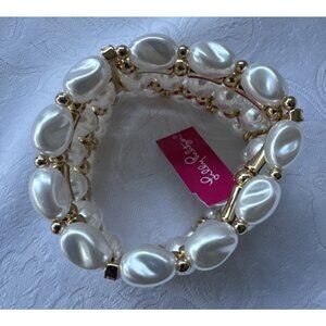 This adorable faux pearl slide on bracelet has with goldtone accents.. New with tags, carefully wrapped inside a dust bag. From a smoke free home. Thanks for shopping with me.