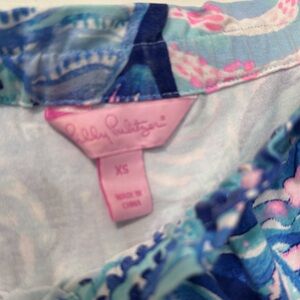Lilly Pulitzer Calla Off-Shoulder Romper Pink Blue Tropical Print Size XS