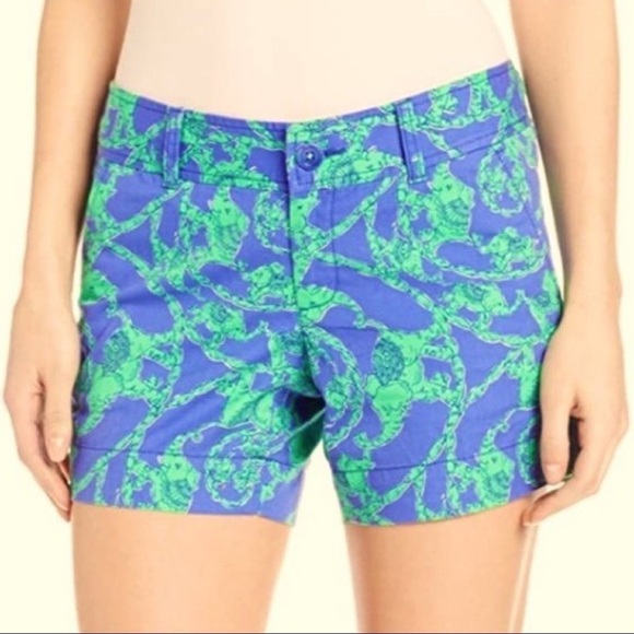 Lilly Pulitzer Callahan Blue Green Loopy Elephants Print Cotton Shorts Size 0