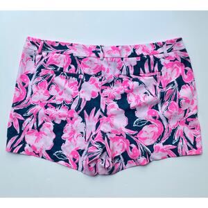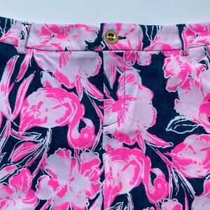 Lilly Pulitzer Callahan Knit Short Inky Navy Flamingle 5" Inseam Size 16 NEW