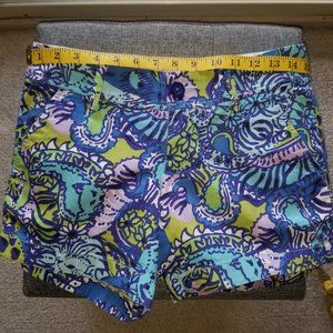 Lilly Pulitzer, Callahan Short, Size 0. GUC, no holes, tears, or stains. Lovely shades of purple, aqua & chartreuse. Please review photos closely for the most accurate depiction of condition and measurements.