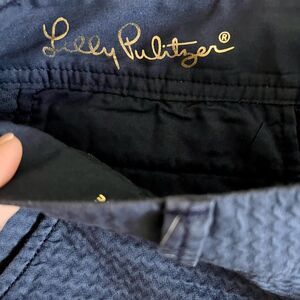 EUC Lilly Pulitzer size 0 Callahan Short in navy. Great texture detail all over, and shiny gold button embellishes the front. Quintessential Lilly!