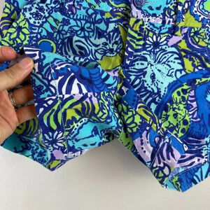 Lilly Pulitzer CALLAHAN Shorts in Multi CattitudeBlue/green/light purple100% cottonStyle 71357Preppy, Nautical, Vacation, Resort Wear, Chino, Bright, Maximalist