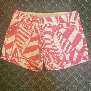Lilly Pulitzer Womens Callahan Shorts Pink Yacht Print 100% Cotton Size 00. These shorts are pre-owned. Great condition. No flaws. Measurements: 14.5 inch waist 11 inch full length 7.5 inch rise 4.5 inch inseam