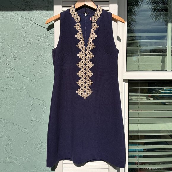 Lilly Pulitzer Callista Shift Dress True Navy Gold Trim